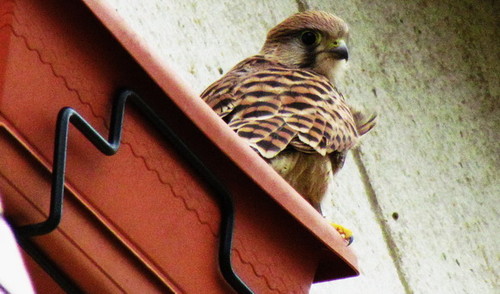 Encostou o carro e encontrou um deles sobre um prédio, ao lado da chaminé. O falcão começou a mirá-lo e ficou por ali, sempre com o olho no Ventor. Virou-se para o Ventor e, com biquinho de malandro disse-lhe: "vais-te roer todo, Ventor, para me tentares apanhar a anilha e identificar-me"! O Ventor chateou-se com ele! Achou-o malandreco e disse-lhe: "é melhor que te cales senão, quando o meu amigo Zuzu aparecer por aqui, ainda levas uma tareia e vais aprender à tua custa".